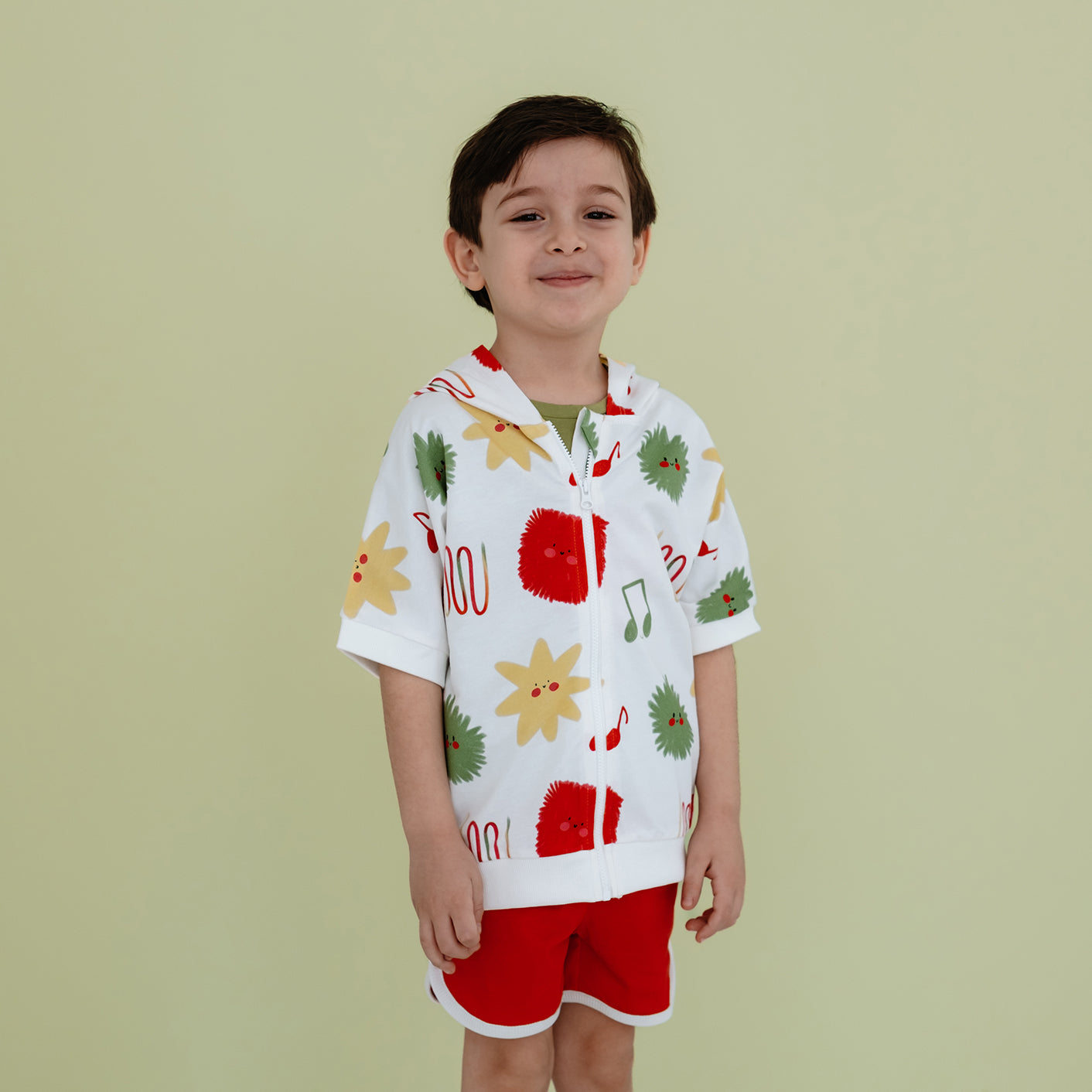 Hooded, light weight fleece sweatshirt with a zipper. The style also has a neck protection piece on the top of the zipper. The  perfect summer sweatshirt!