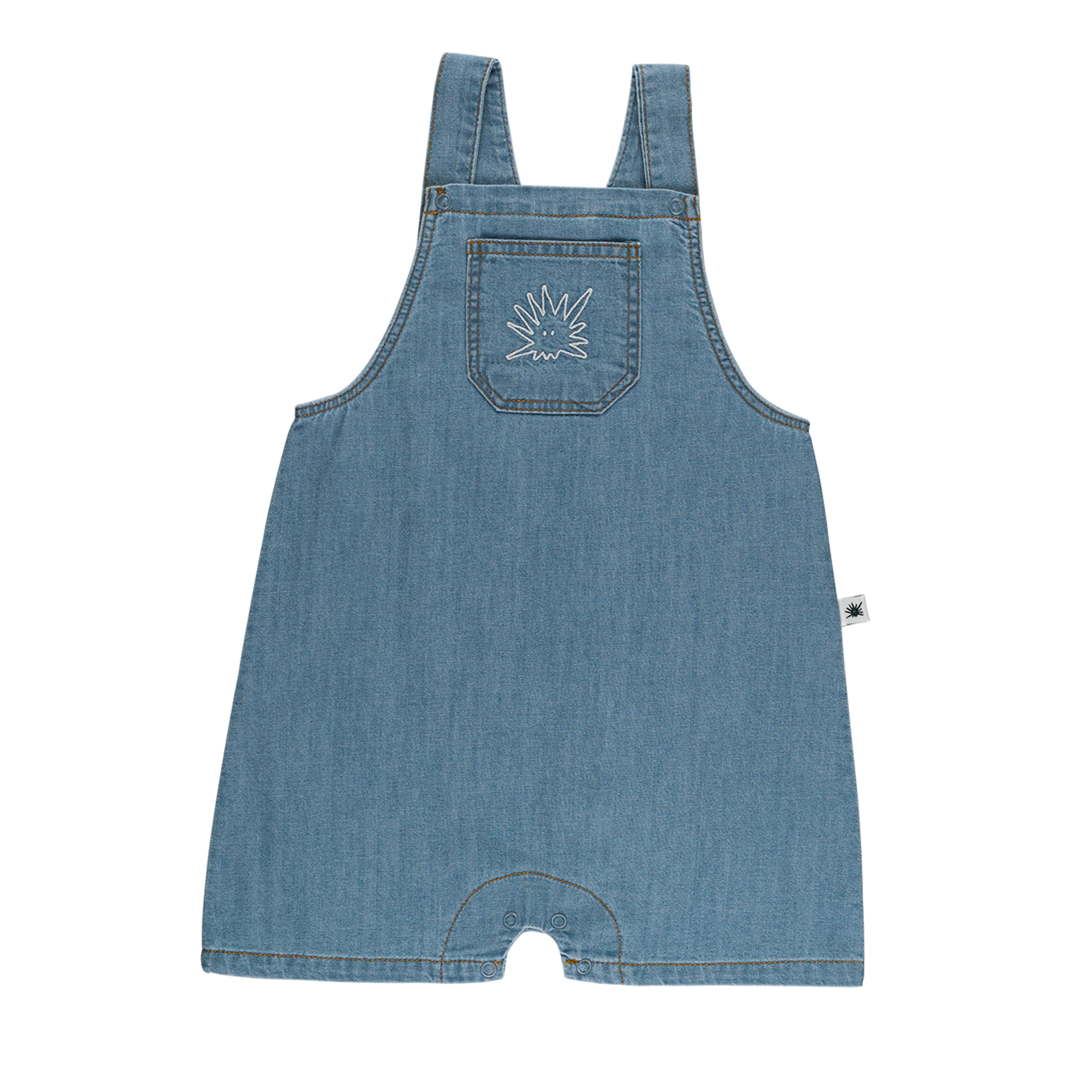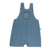 Lightweight, 100% organic cotton denim dungarees with front pocket and embroidery details. There are also inseam snaps for easy dressing.