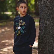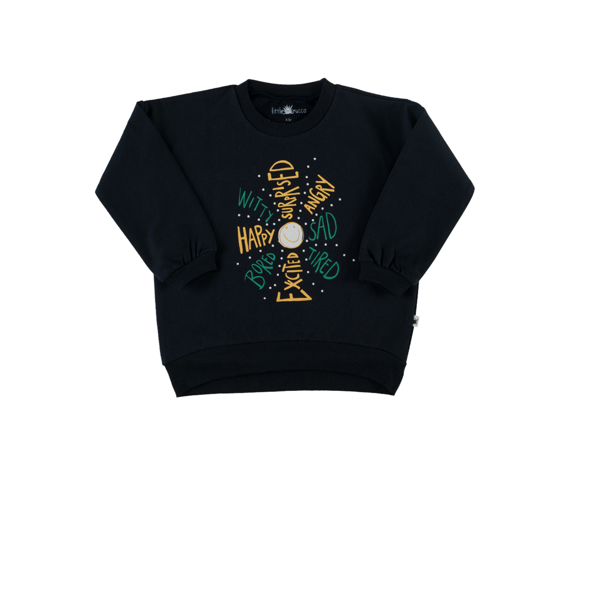 Loose cut sweatshirt with rib details. Sizes up to 3 years have snaps on the shoulder for easy dressing