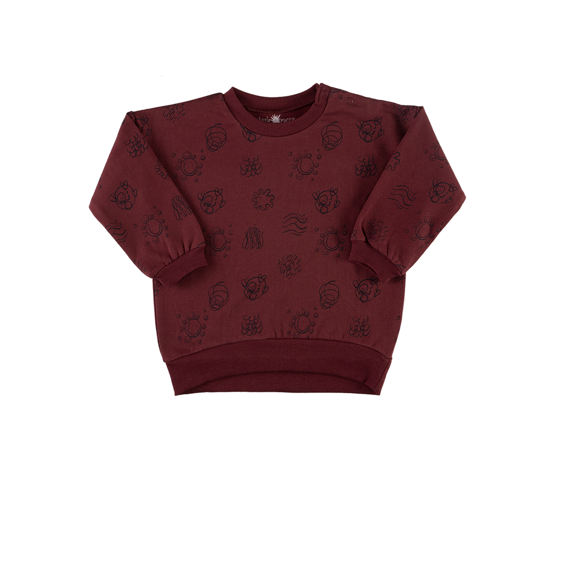 Loose cut sweatshirt with rib details. Sizes up to 3 years have snaps on the shoulder for easy dressing