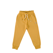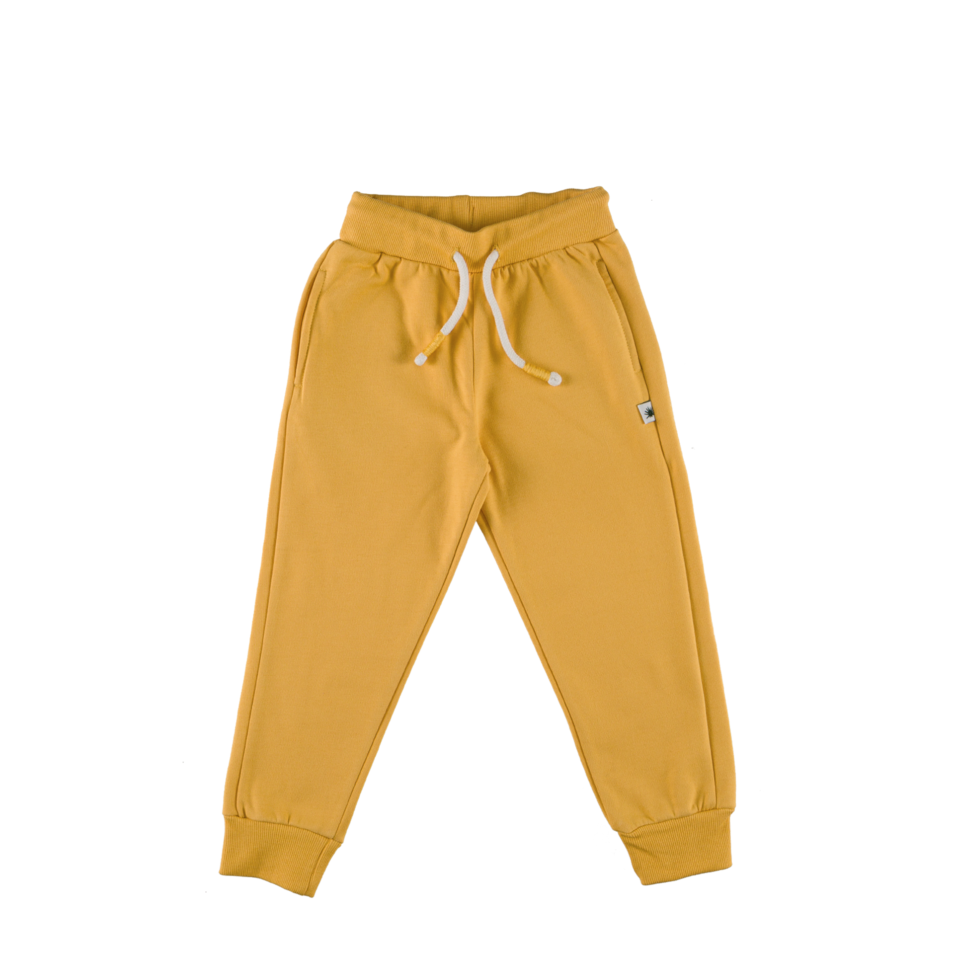 Jogger style pants with pockets and rib details. There's a cotton drawstring for adjusting the waistline.