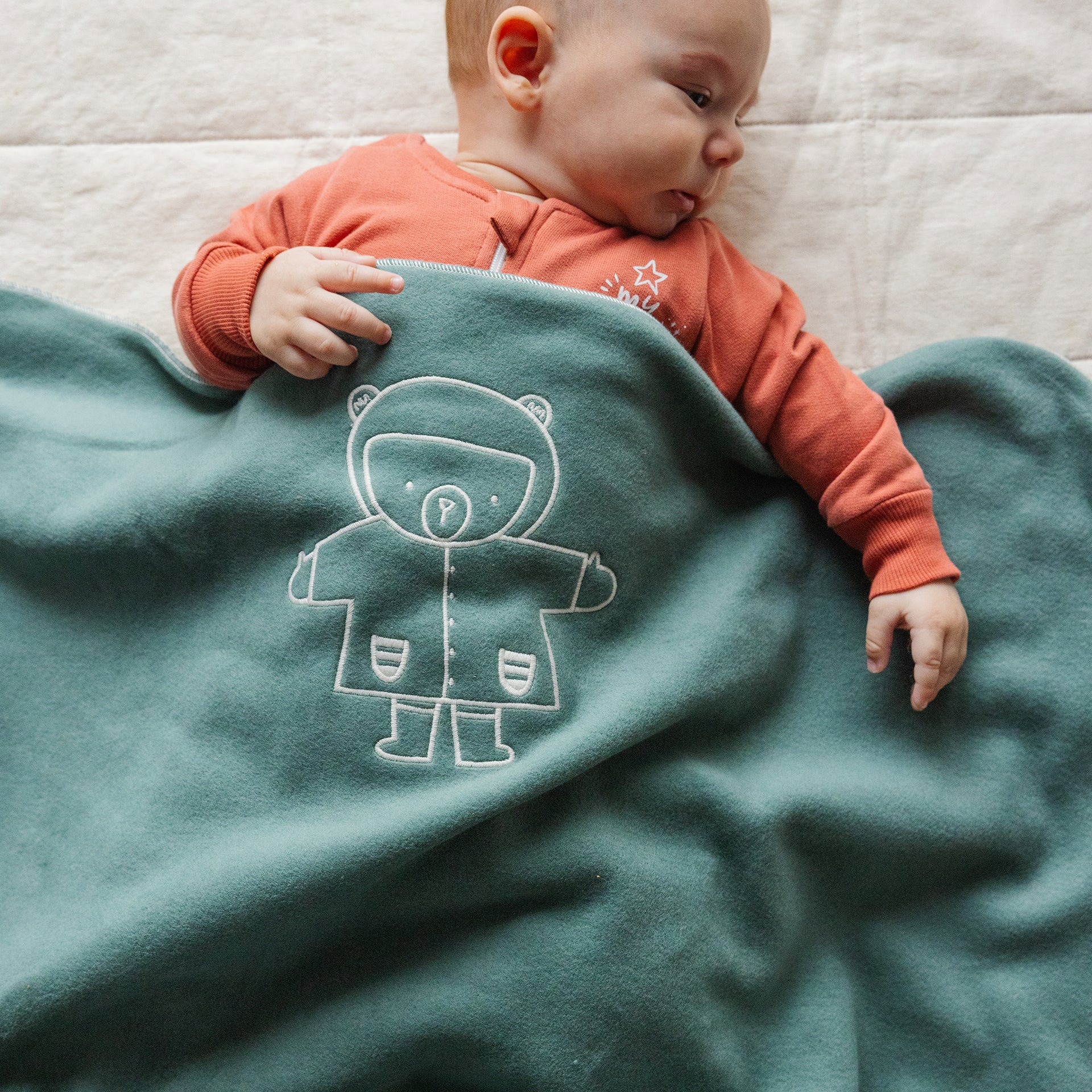 80*100cm double layer blanket with teddy embroidery on the polar fleece side. The back of the blanket is our soft double fleece fabric.