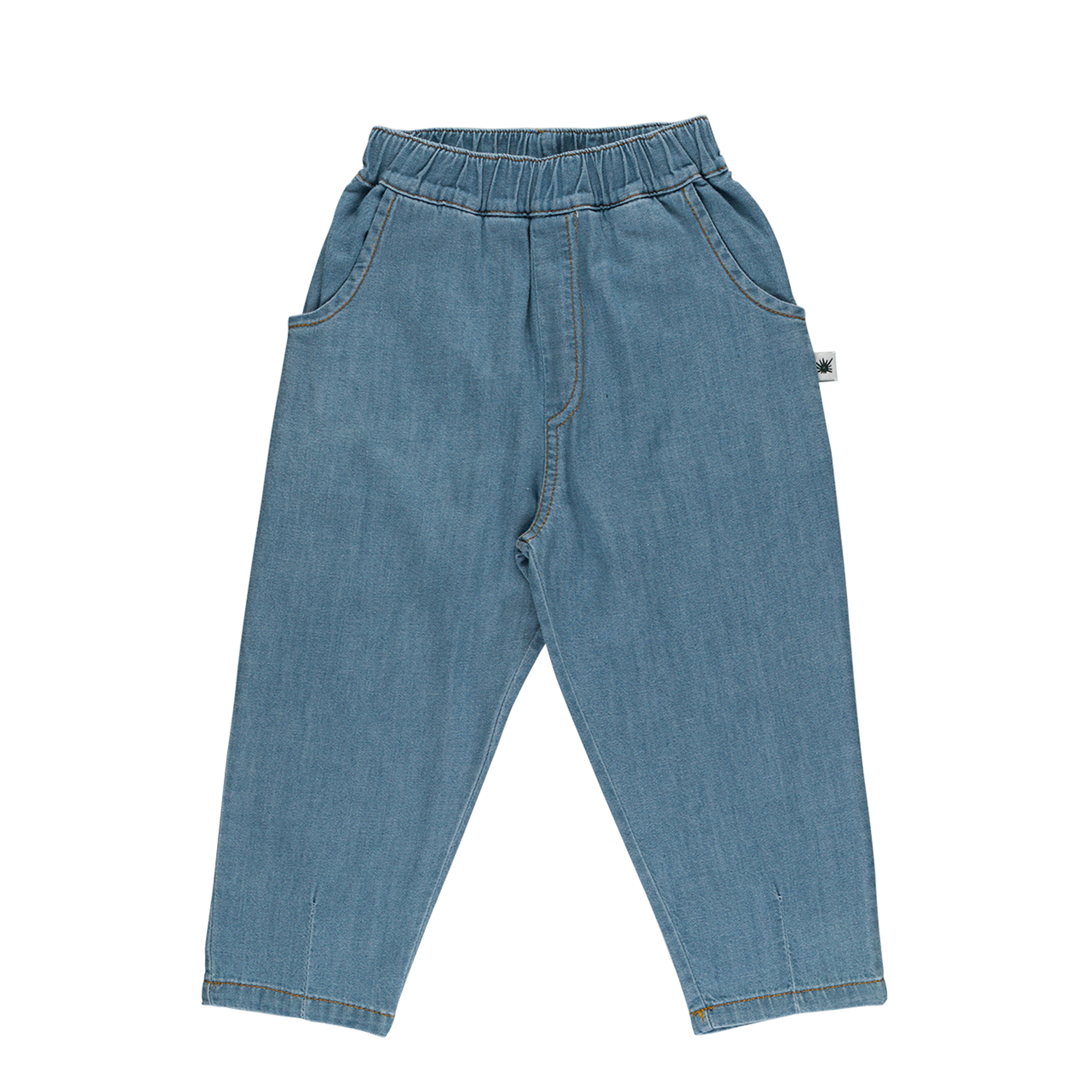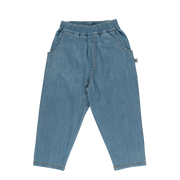 This super comfy jeans has an elastic waistband and is a little baggy which makes it perfect to wear even with diaper. There’s a sticth detail on the hems that makes these jeans look great when they’re rolled up.