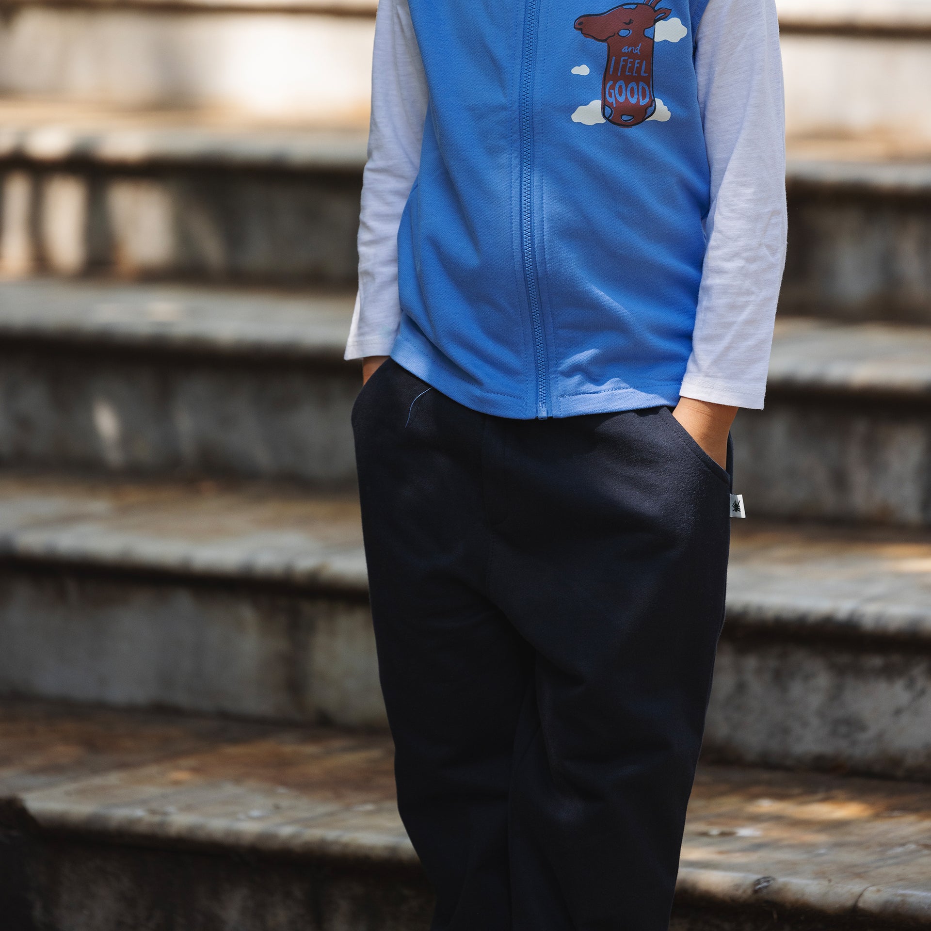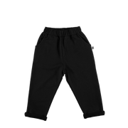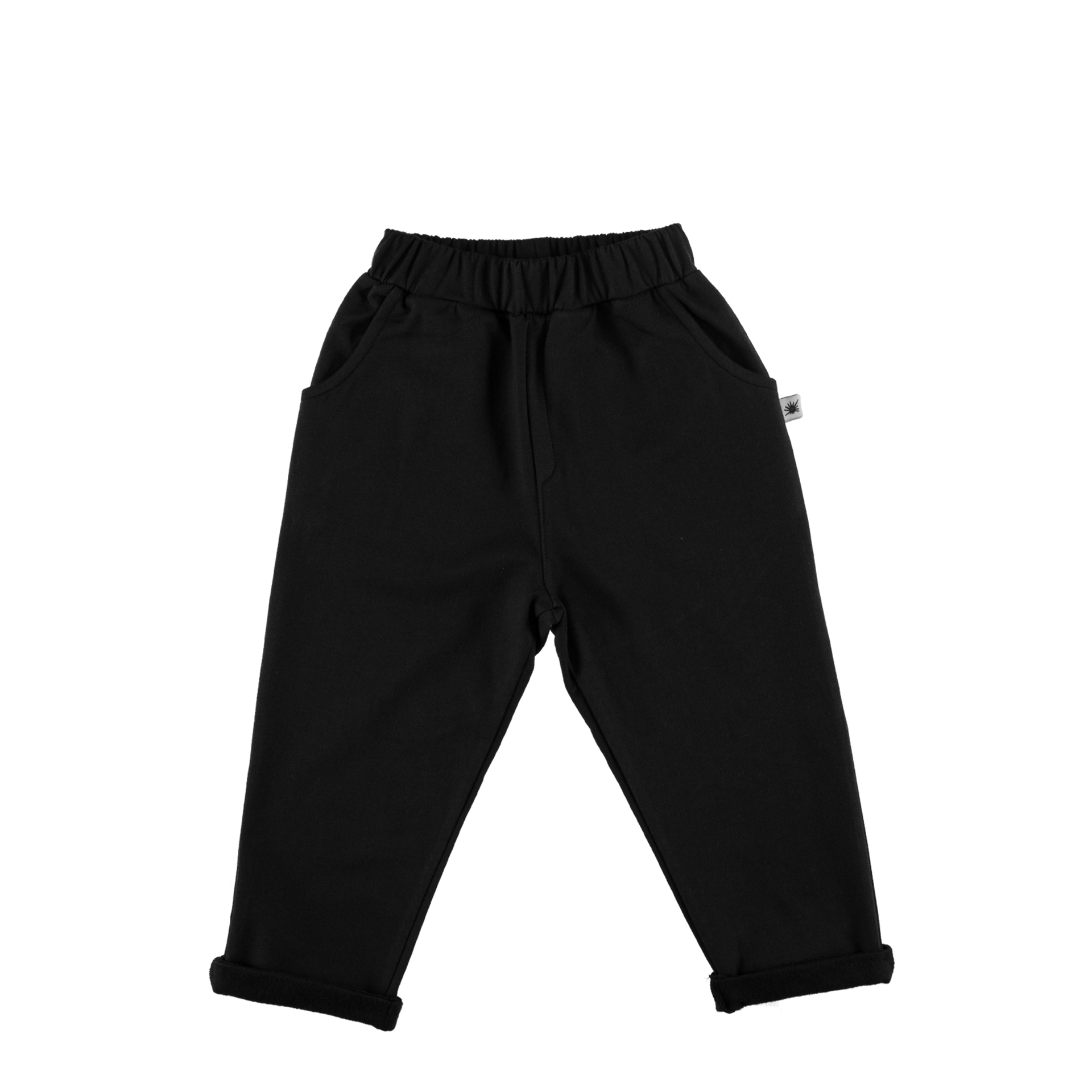 This super comfy double fleece pants has an elastic waistband and is a little baggy which makes it perfect to wear even with diaper. The fabric is brushed inside. Please roll up the hems for a cool look!