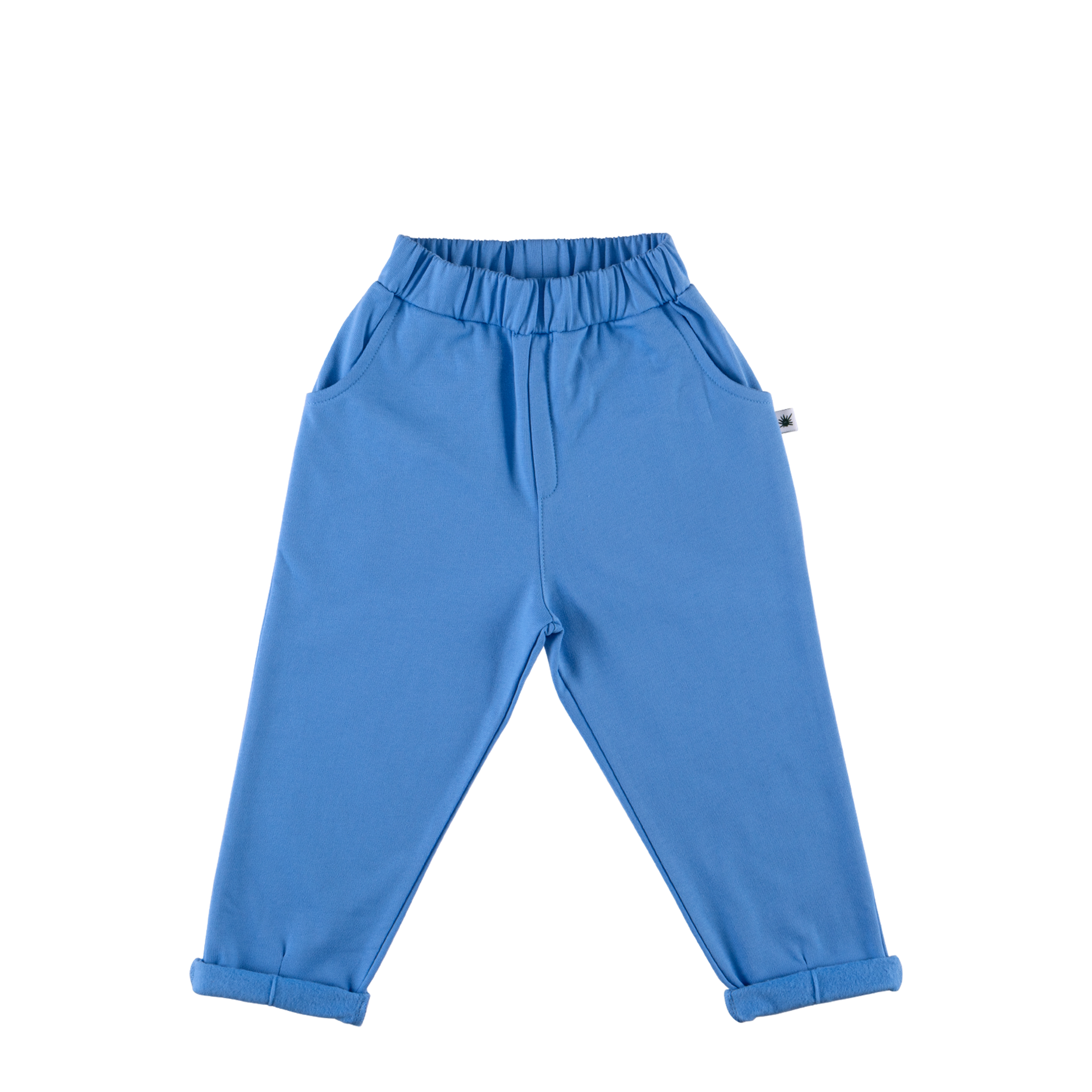 This super comfy double fleece pants has an elastic waistband and is a little baggy which makes it perfect to wear even with diaper. The fabric is brushed inside. Please roll up the hems for a cool look!