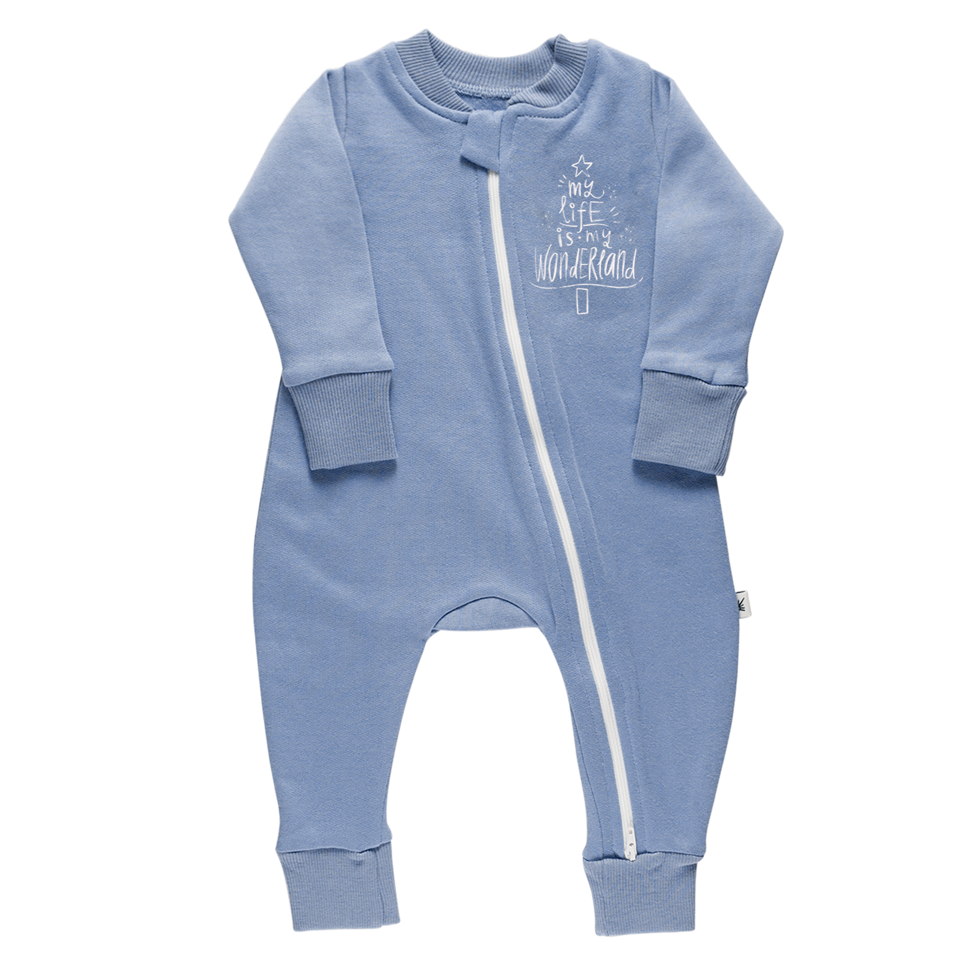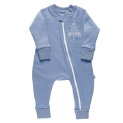 "Warm Zip" Jumpsuit - Light Blue (New Year Tree)