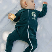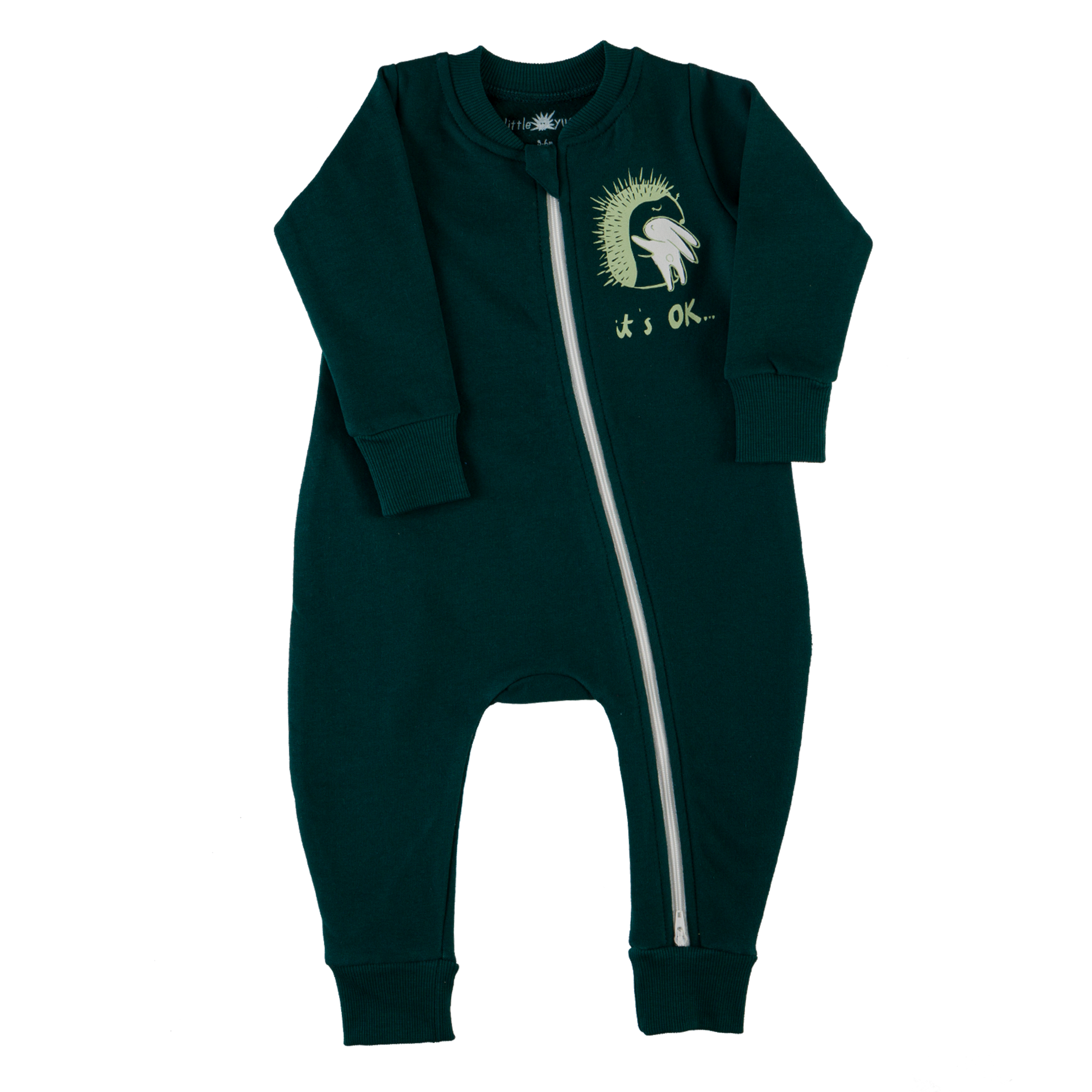 Long-sleeve, non footed, double fleece jumpsuit with a TWO-WAY zipper. The fabric is brushed inside to keep the little onese warm. There’s a special protection piece on the neck.