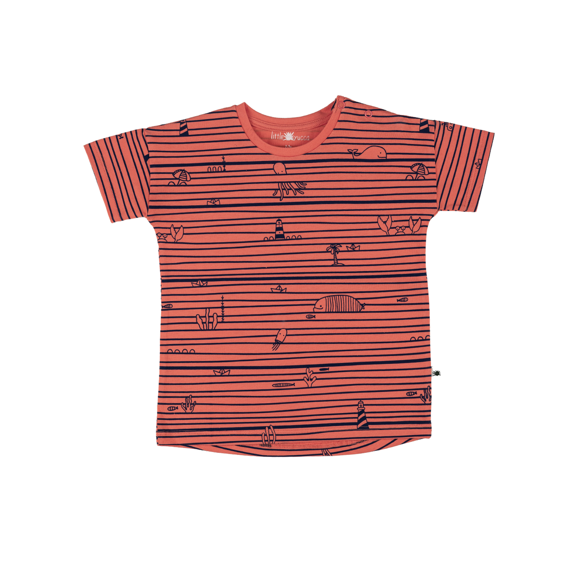 Loose-cut jersey t-shirt. Sizes up to 3 years have shoulder snaps for easy dressing.
