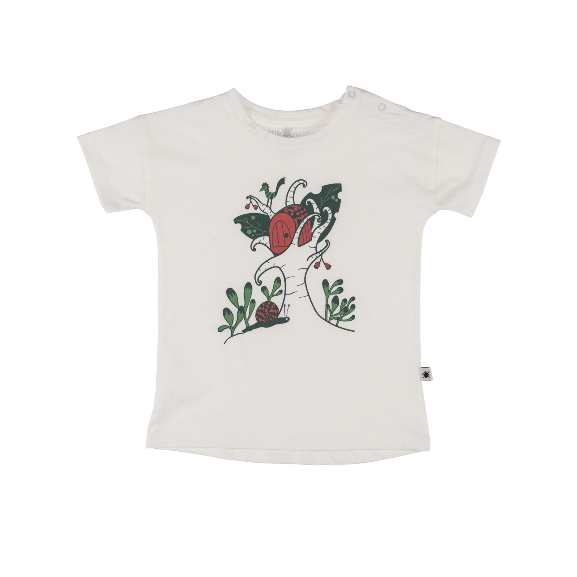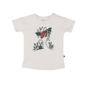 Loose-cut jersey t-shirt. Sizes up to 3 years have shoulder snaps for easy dressing.
