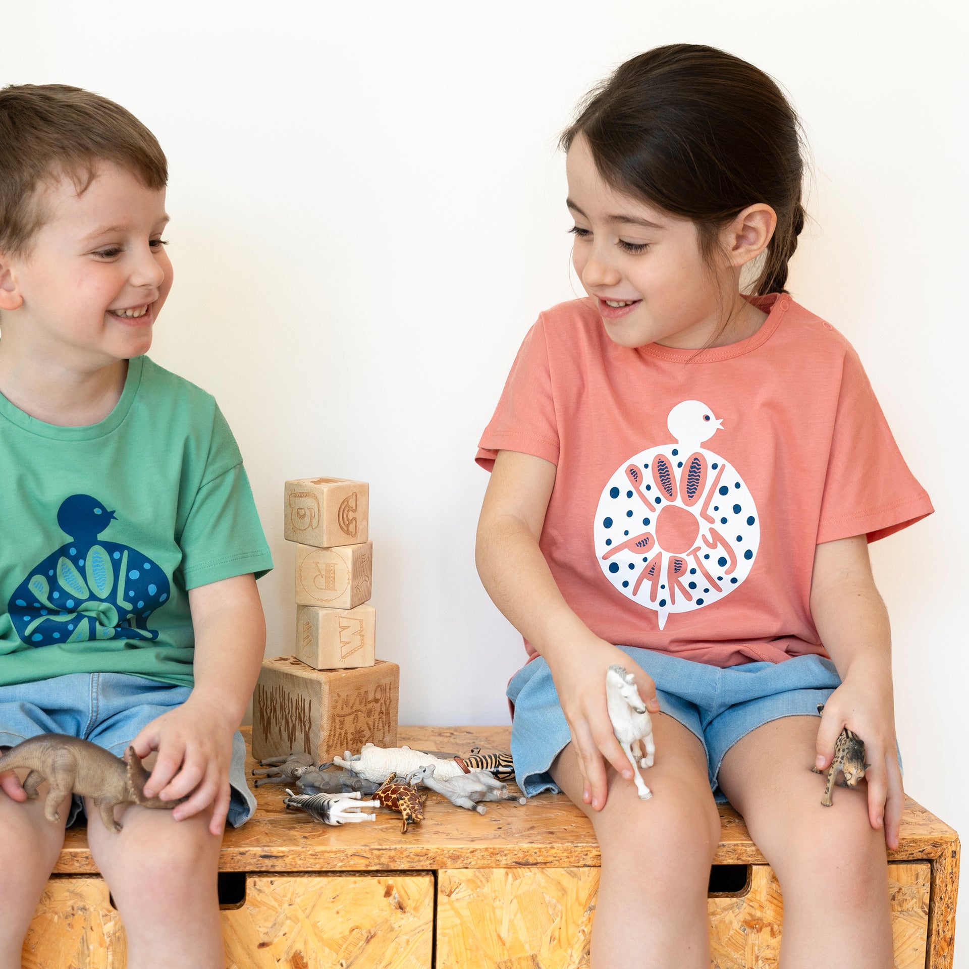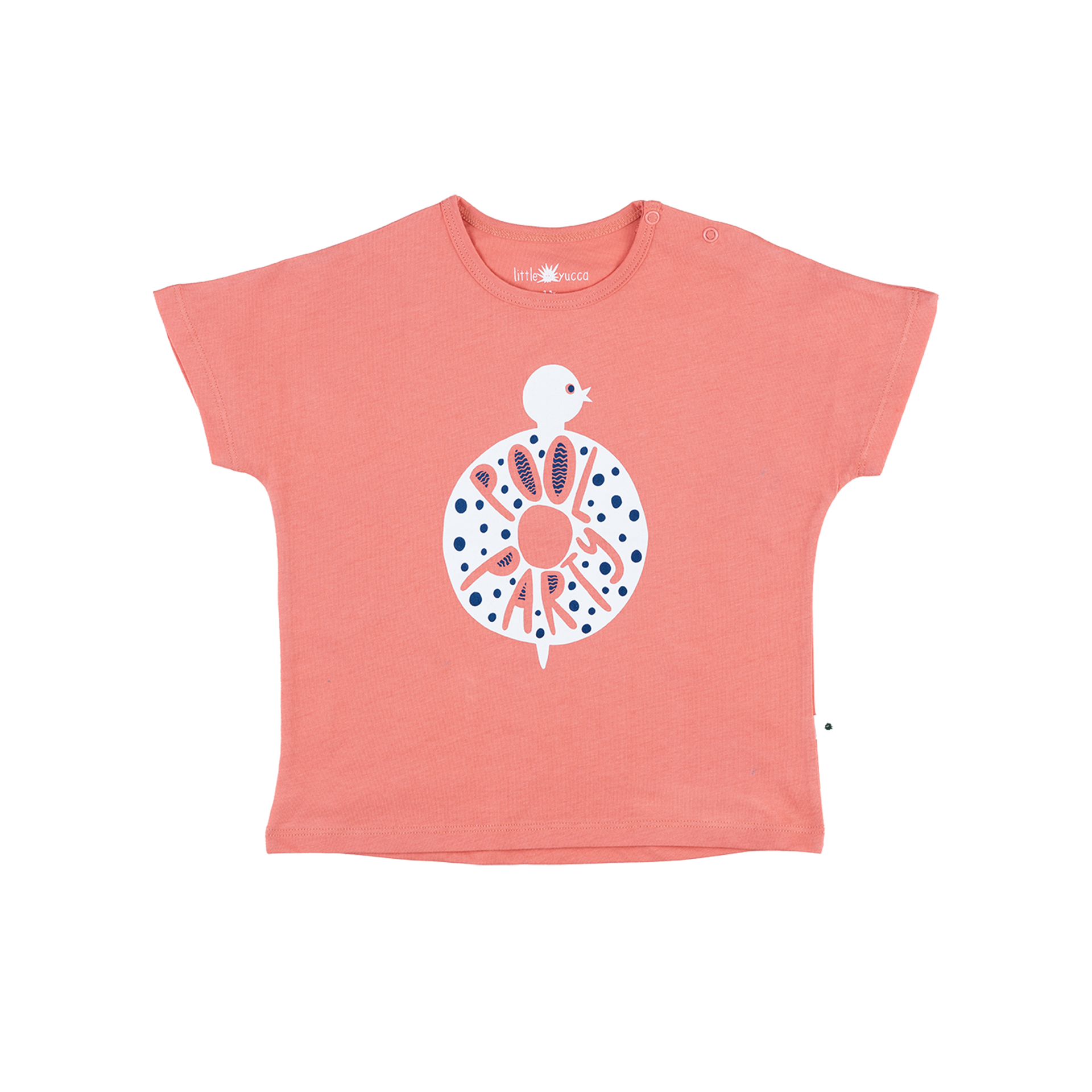 Loose-cut jersey t-shirt. Sizes up to 3 years have shoulder snaps for easy dressing.