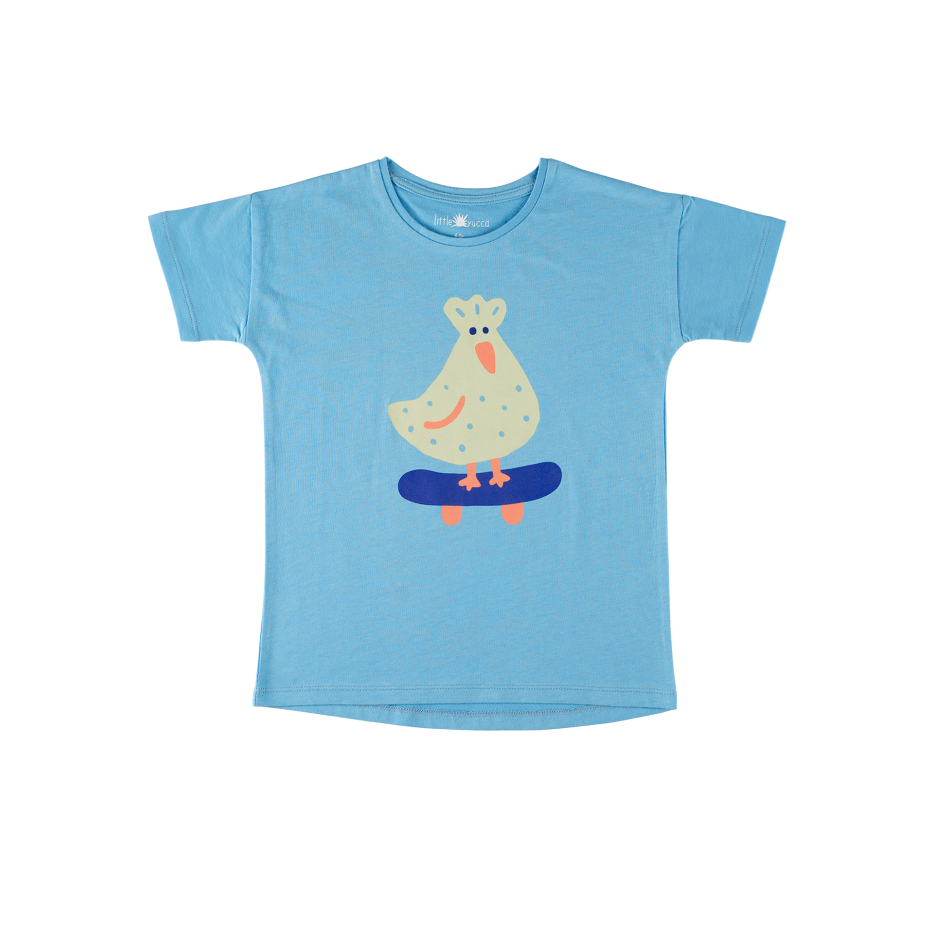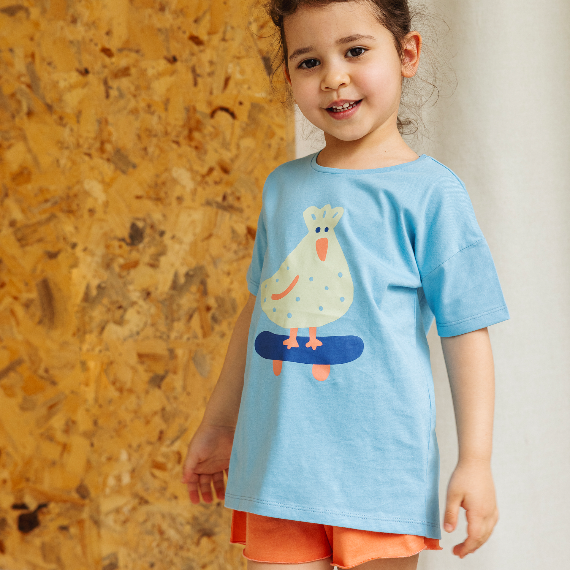 Loose-cut jersey t-shirt. Sizes up to 3 years have shoulder snaps for easy dressing.