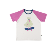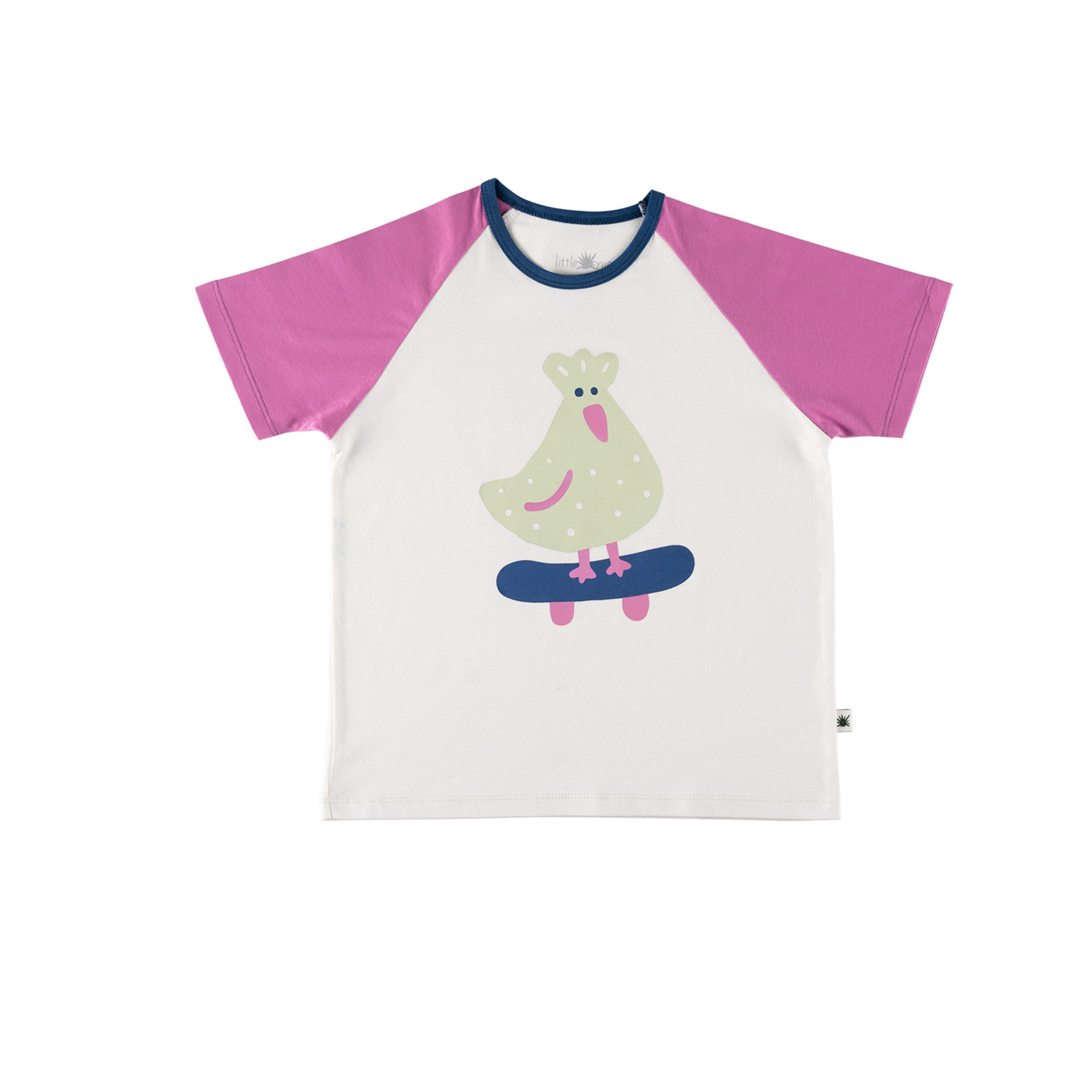 Multi color, loose cut single jersey tshirt. Sizes up to 3 years have shoulder snaps for easy dressing.