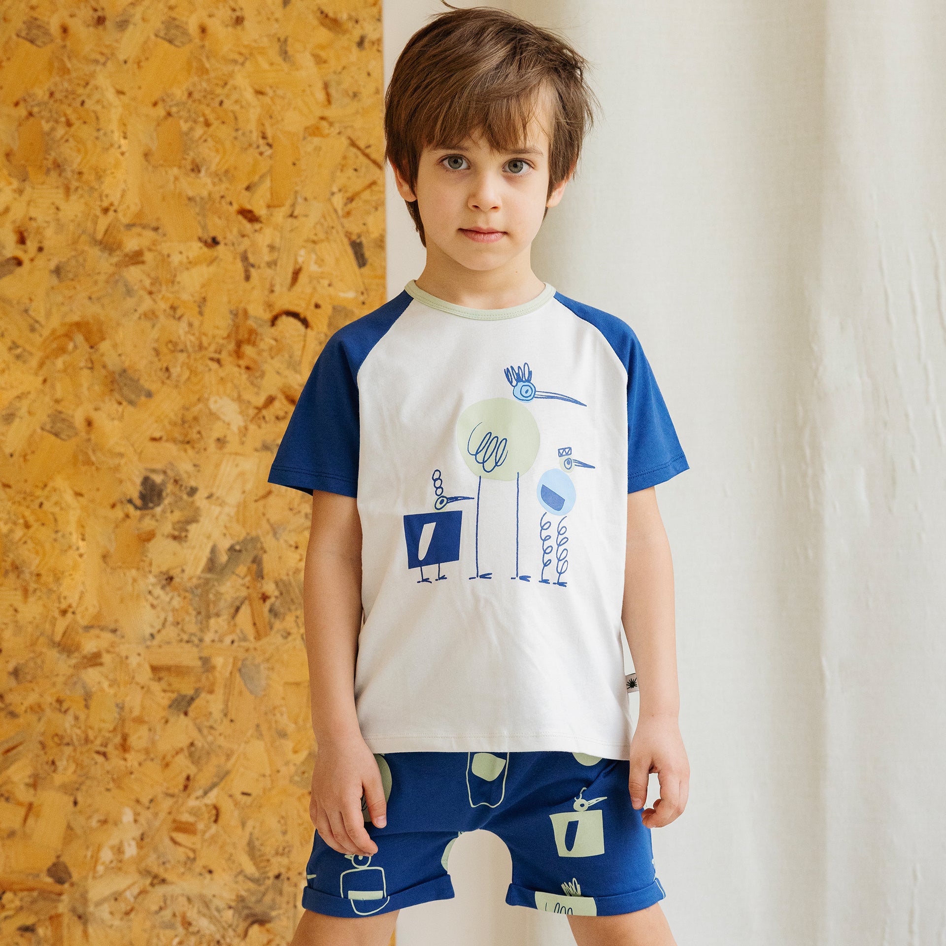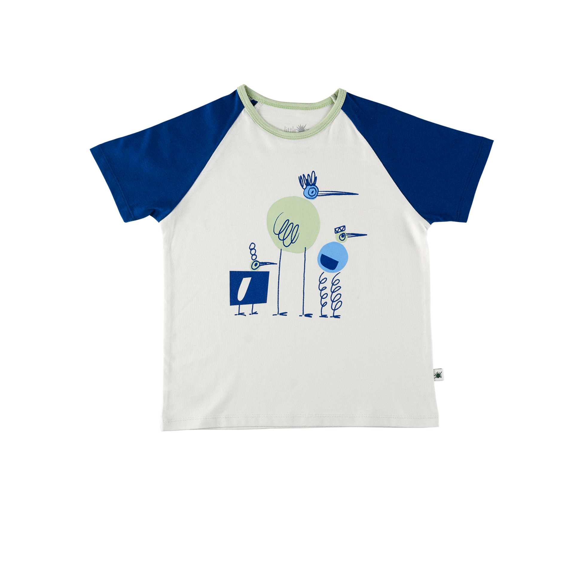 Multi color, loose cut single jersey tshirt. Sizes up to 3 years have shoulder snaps for easy dressing.