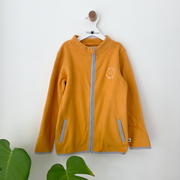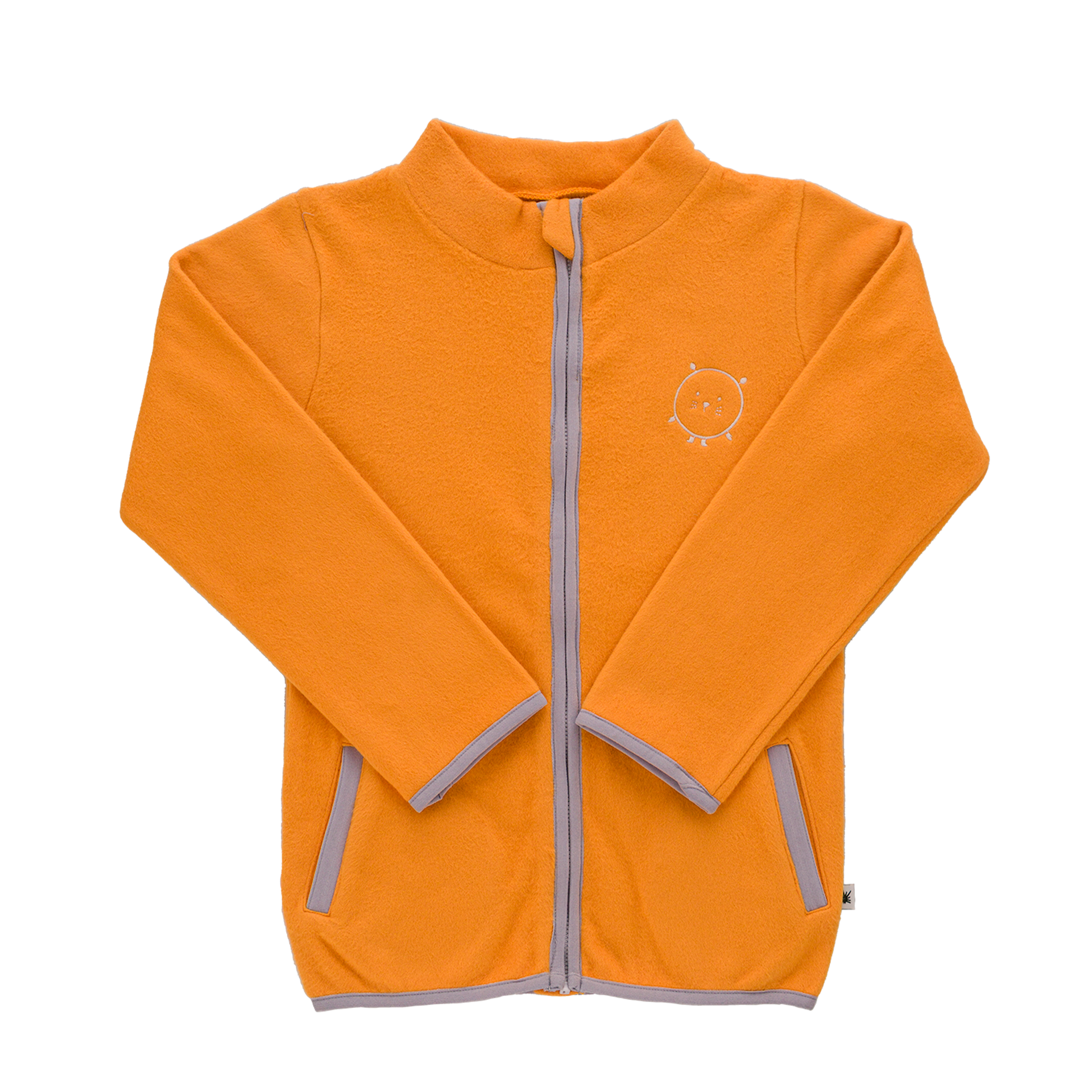 Cepli, önden fermuarlı ve kontrast biye detaylı, %100 organik pamuk polar ceket çocukların kış boyu giymesi için...