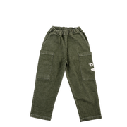 Organik pamuk, geniş kesim, beli lastikli ve 4 cepli denim pantolonun tek cebi üzerinde nakış detayı bulunur.