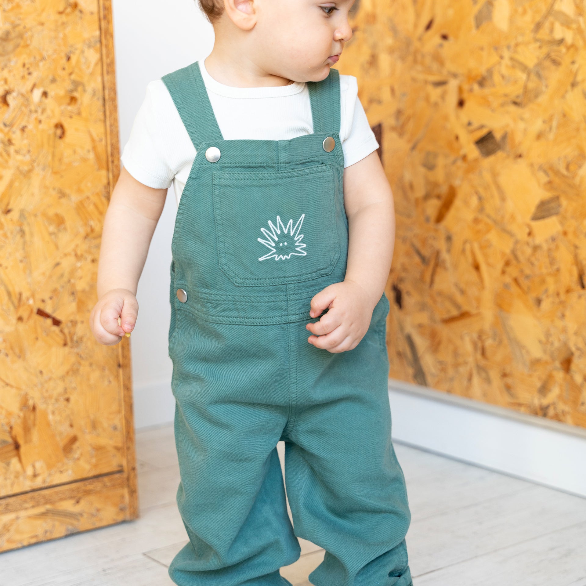 Yeni, yumuşacık dokuma, kanvas kumaştan salopetimizin kolay giyim ve alt değişim için yanlarında ve bacak içlerinde çıt çıtları bulunur. Ayrıca askılarında bulunan ilave çıtçıtlarla salopetin boyu çocuğunuz büyüdükçe ayarlanabilir. Önde bir cep detayı ve üzerinde "yucca" nakışı vardır.